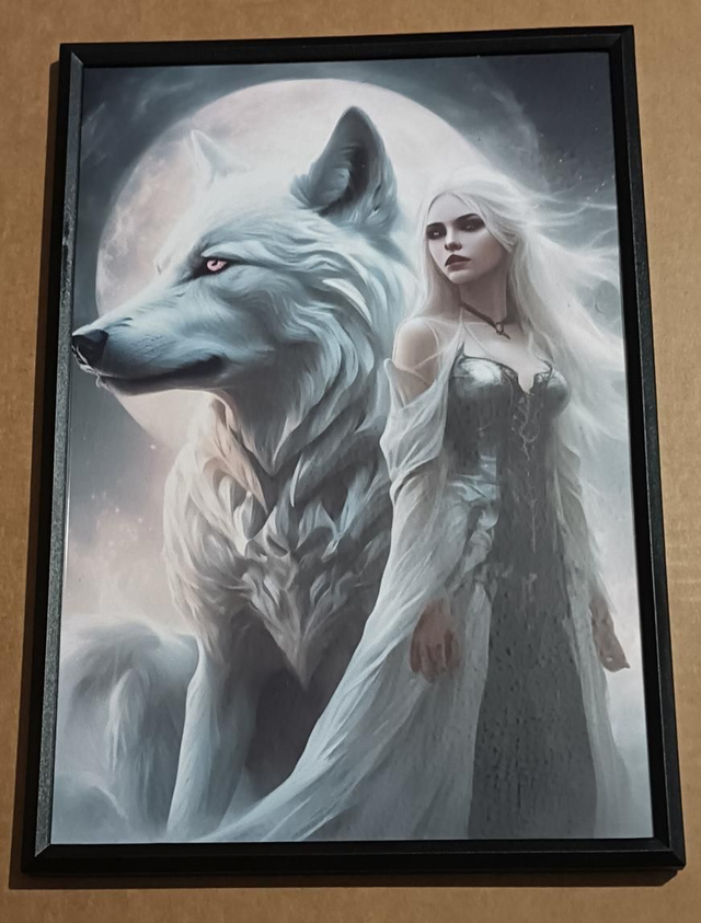 Custom Design A4 White Wolf and Damsel Picture.