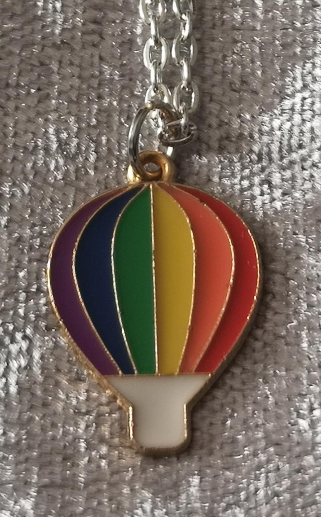 Enamel Rainbow Hot Air Balloon Pendant On A 18 Inch Silver Plated Chain In A Coloured Gift Box.