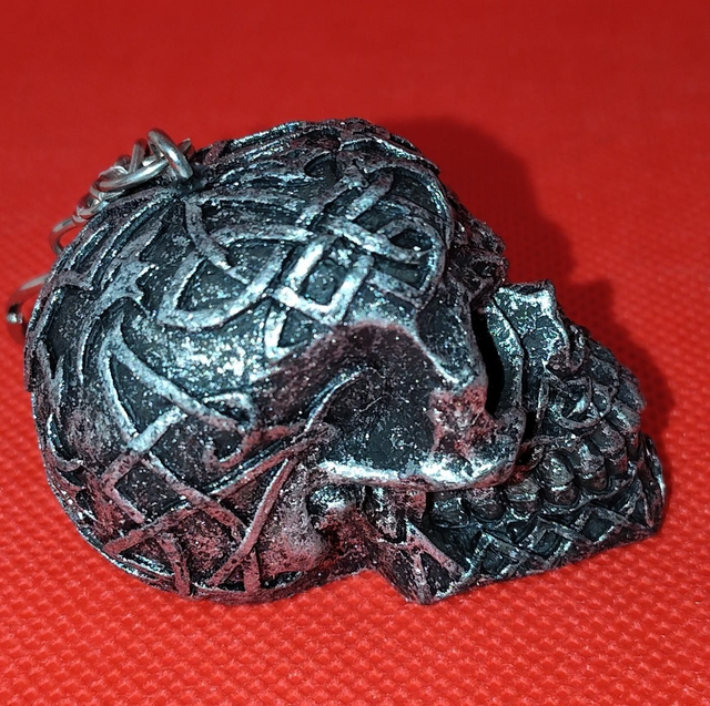 Black Mini Skull Keyrings with Celtic Design and Split Ring.