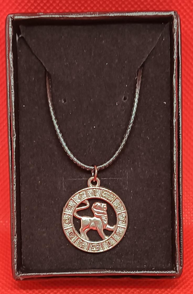 Tibetan Silver Leo Horoscope Pendant on a 22" black cord in a Black Gift Box.